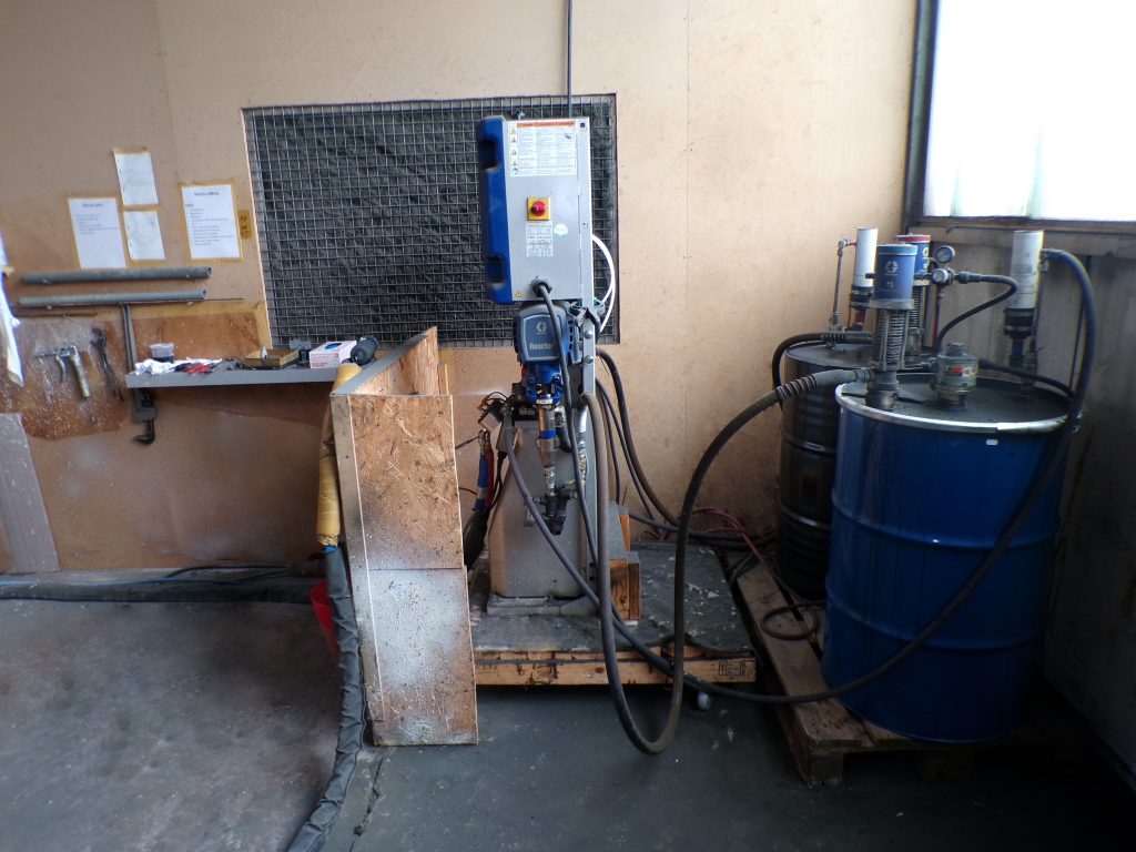 Eine Polyurea Beschichtung bieten wir derzeit in Schwarz Struktur / glänzend für Rohteile bis 1200 x 1200 x 1000 mm und einem Gewicht von 20 kg an.